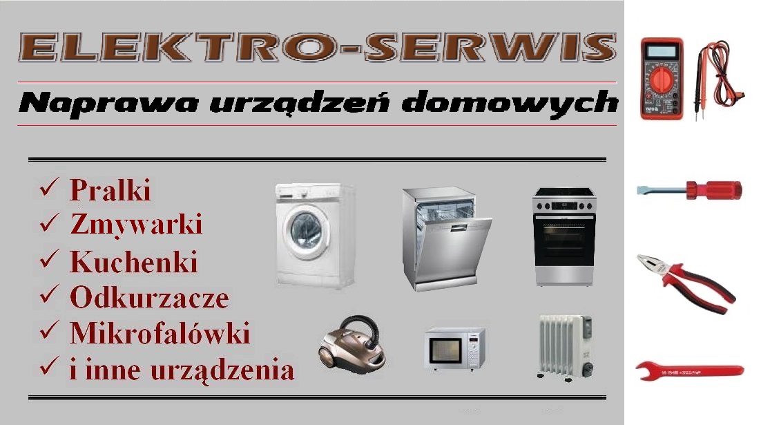- naprawa urządzeń domowych AGD: pralki, zmywarki, kuchnie gazowo-elektryczne, piekarniki, mikrofalówki, płyty ceramiczne i indukcyjne, stacje parowe, odkurzacze